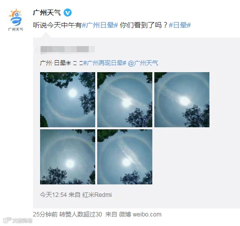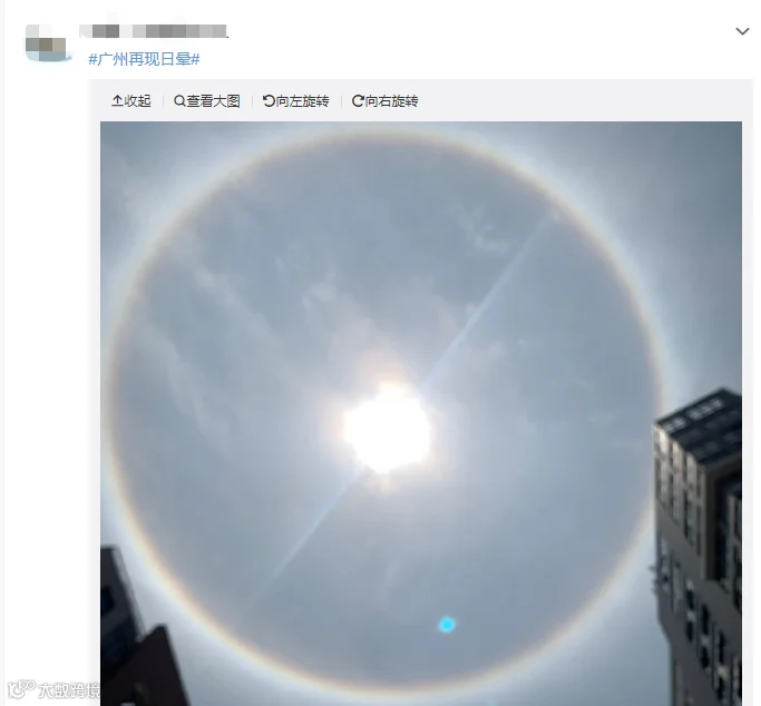 “日晕并不少见。”广州市气象台工作人员告诉记者,所谓日晕,简单来说就是高空中有卷层云,其中的冰晶被太阳光折射之后形成的。