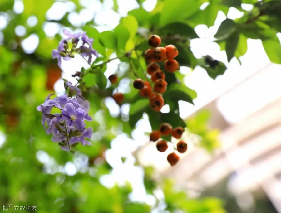小区门口大树上开着叫不上名字的小花