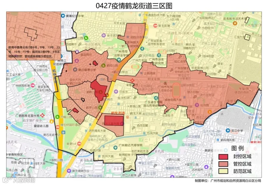 五、白云区因疫情划定的封控区、管控区继续按照区新冠肺炎防控指挥办的要求严格落实各项管控措施,后续将根据疫情发展形势动态调整。