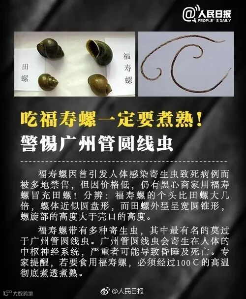 发现一个福寿螺体内的寄生虫