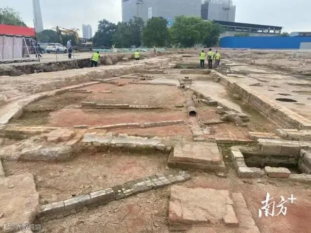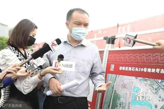 今天,记者第一时间探访考古发掘现场看到,该地块位于工业大道中以西,背靠南石28创意园,往南便是珠江,靠近白鹅潭。