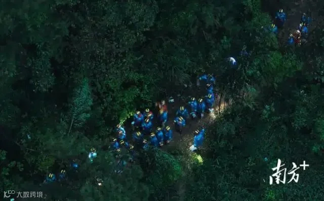 一个小时后,天全部黑下来,整个搜救现场依然灯火通明。