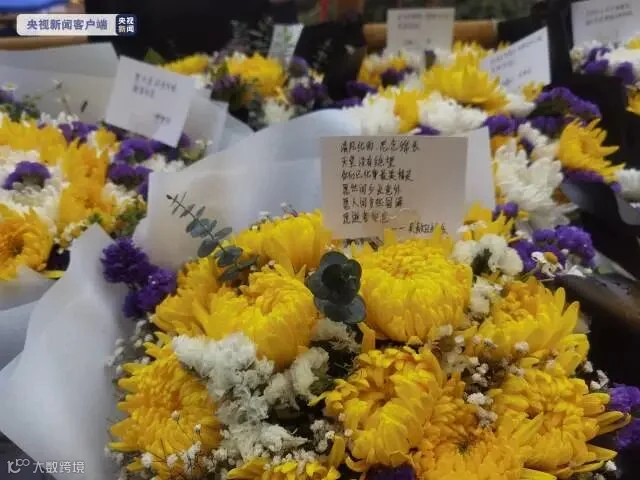 很多群众带来的鲜花,