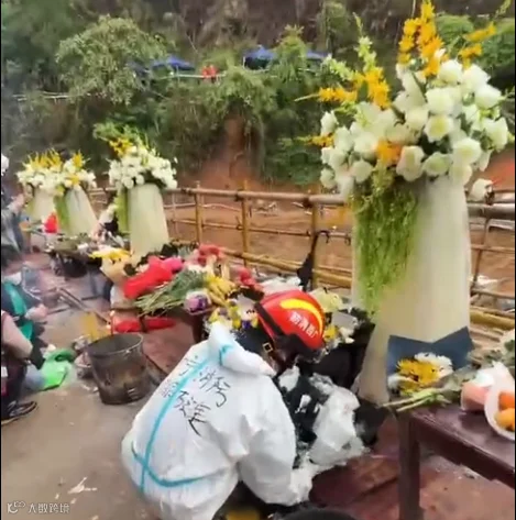 消防员们把花收集,
