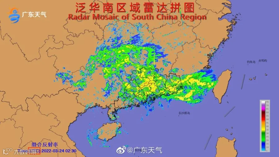24日,粤北偏南市县、珠江三角洲、粤东市县有中到大雨局部暴雨,其余市县有(雷)阵雨局部大雨或暴雨。昼夜温差小,早晨最低气温:粤北10~13℃(高海拔山区7~10℃),雷州半岛16~20℃,其余市县12~15℃。