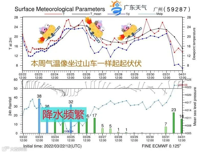 25日,河源、韶关、清远和珠江口两侧市县有中到大雨局部暴雨并伴有雷电,其余市县多云到阴天有分散(雷)阵雨,局部大雨或暴雨;大部市县早晚有(轻)雾,雾时能见度低于1公里,气温明显回升,早晨最低气温:粤北和粤东市县15~17℃,雷州半岛20~24℃,其余市县17~20℃。
