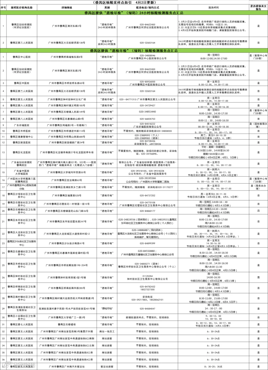 番禺区核酸采样点汇总