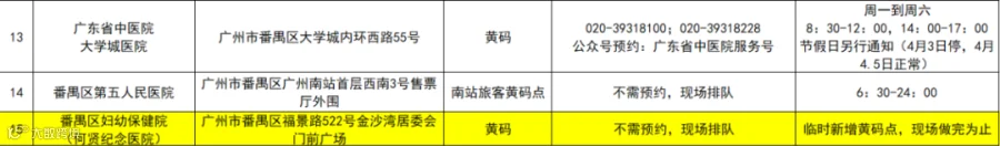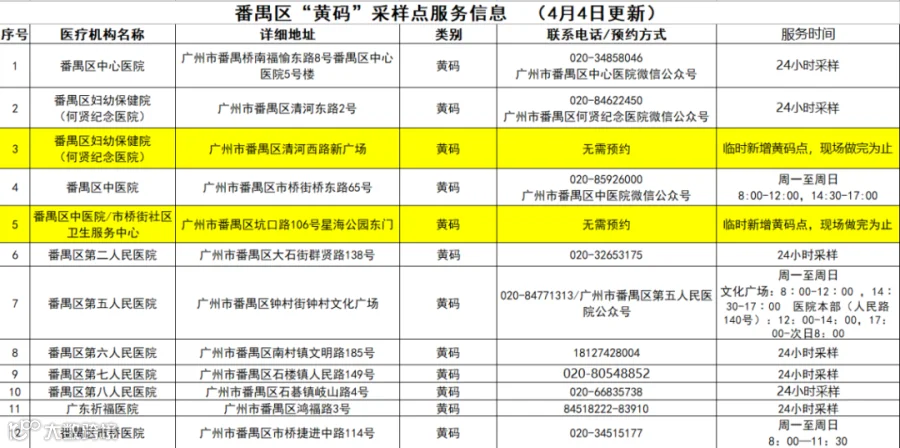 番禺区“黄码”检测服务汇总表