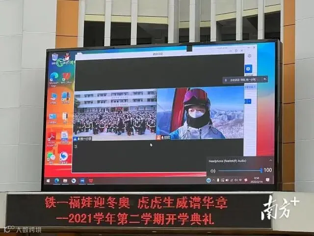 活动现场通过视频连线的方式带领铁一学子走近冬奥,走近高山滑雪医疗保障队。本次连线的对象是铁一小学1992届校友,中国协和医科大学北京协和医院神经外科副主任医师邓侃。他通过视频给学弟学妹们介绍了他所参与的冬奥滑雪医疗保障工作。