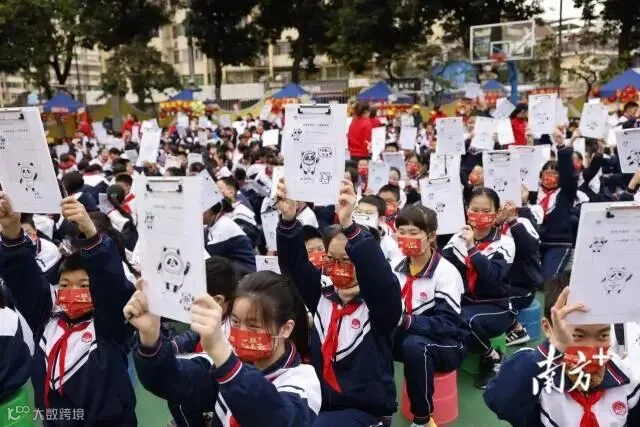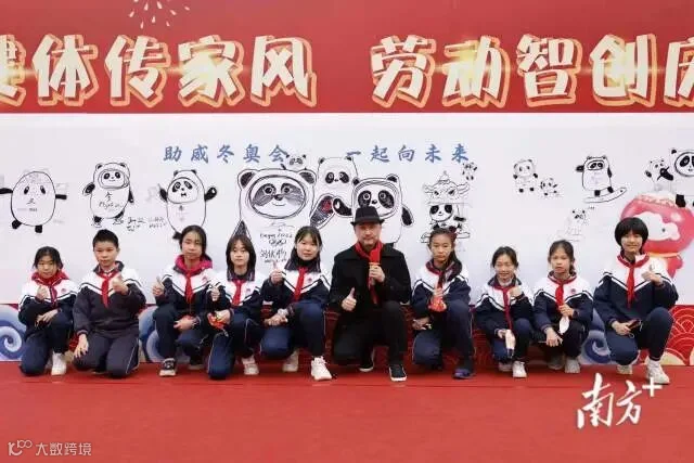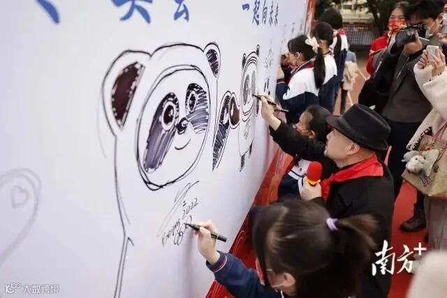 本次昌岗中路小学开学典礼的主题是“巧智健体传家风,劳动智创庆新春”。活动内容除了体现劳动和智慧创作外,还邀请“冰墩墩”设计团队总执行、广州美术学院副教授刘平云来到开学典礼的现场,讲述“冰墩墩”诞生的故事。在向同学们分享团队设计故事后,刘平云带领全体少先队员现场绘画“冰墩墩”,一个个可爱的“冰墩墩”诞生了。开学典礼上,学校还聘请刘平云为校外辅导员,并颁发聘书。