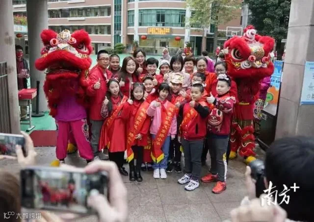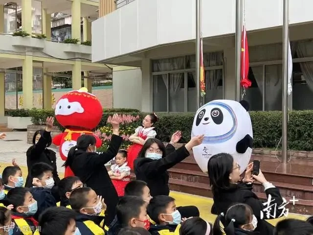 金牛辞旧,瑞虎迎新,2月14日上午,广州市越秀区铁一小学学子在“冰墩墩”“雪容融”“福娃”和舞狮队的热烈欢迎中迈进校园,开启“生龙活虎”的新学期校园生活。