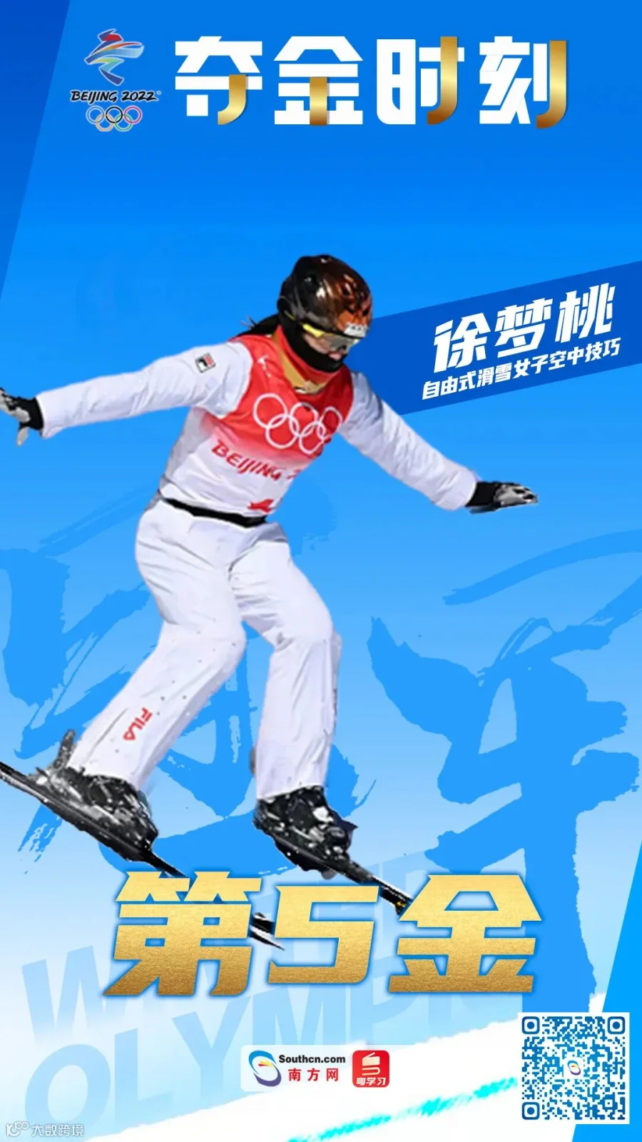 2月14日晚,中国选手徐梦桃夺得北京冬奥会自由式滑雪女子空中技巧金牌。这是中国代表团在本届冬奥会上获得的第五枚金牌,也是中国女选手第一次在冬奥会该项目中获得金牌。