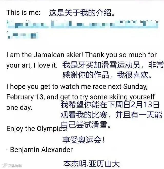 对绘画礼物《短道速滑梦》赞不绝口