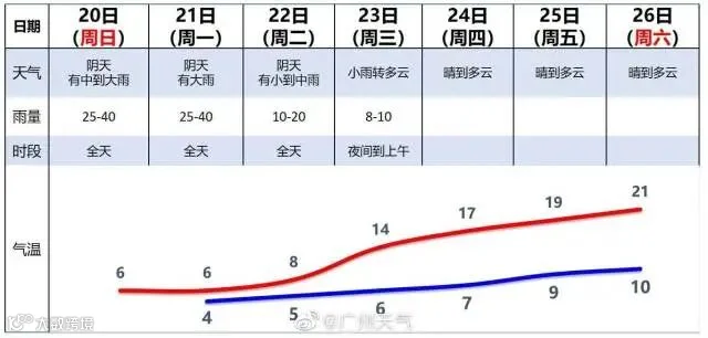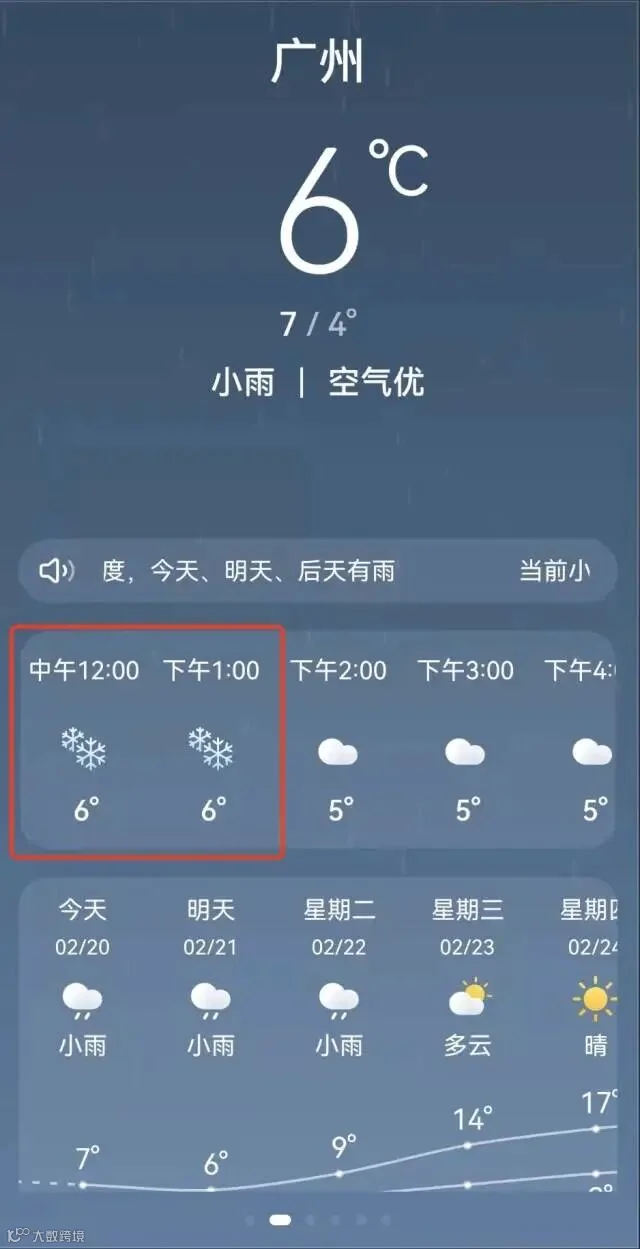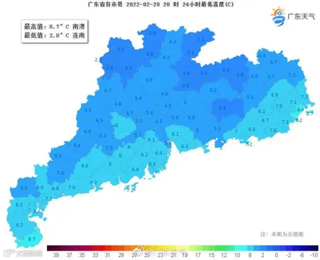 其中,过程最低出现在今晚到明晨。预计,粤北:1℃~4℃(高海拔山区-3℃~0℃有冰冻和局地路面结冰),广州4℃~5℃。