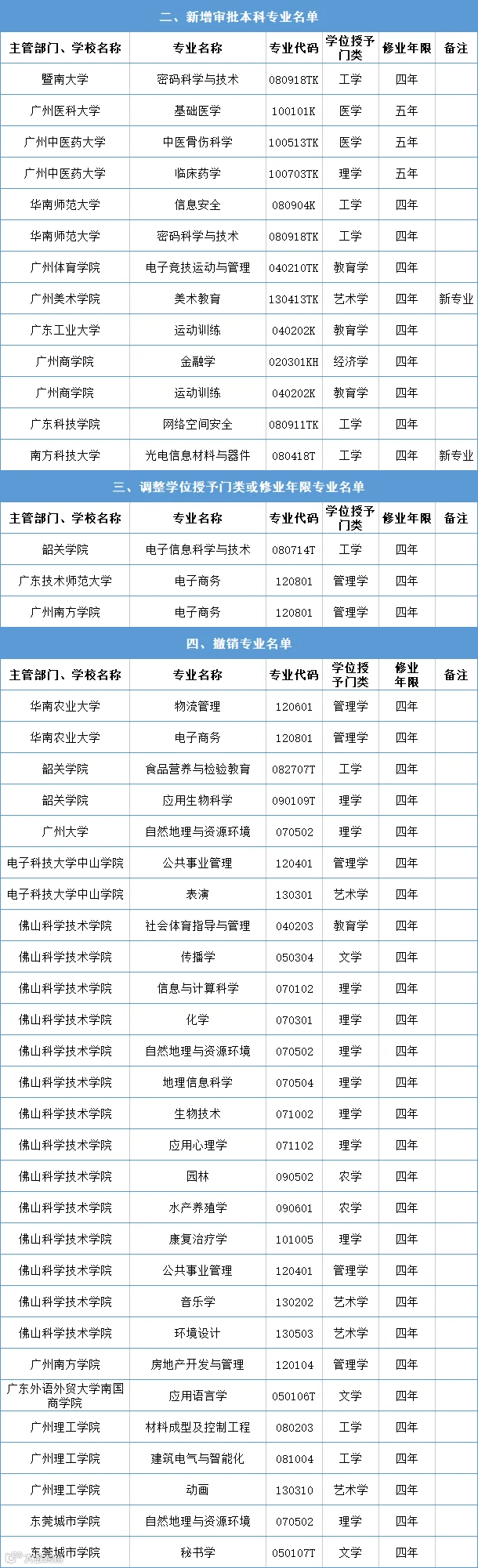 广东45所高校新增108个备案本科专业,