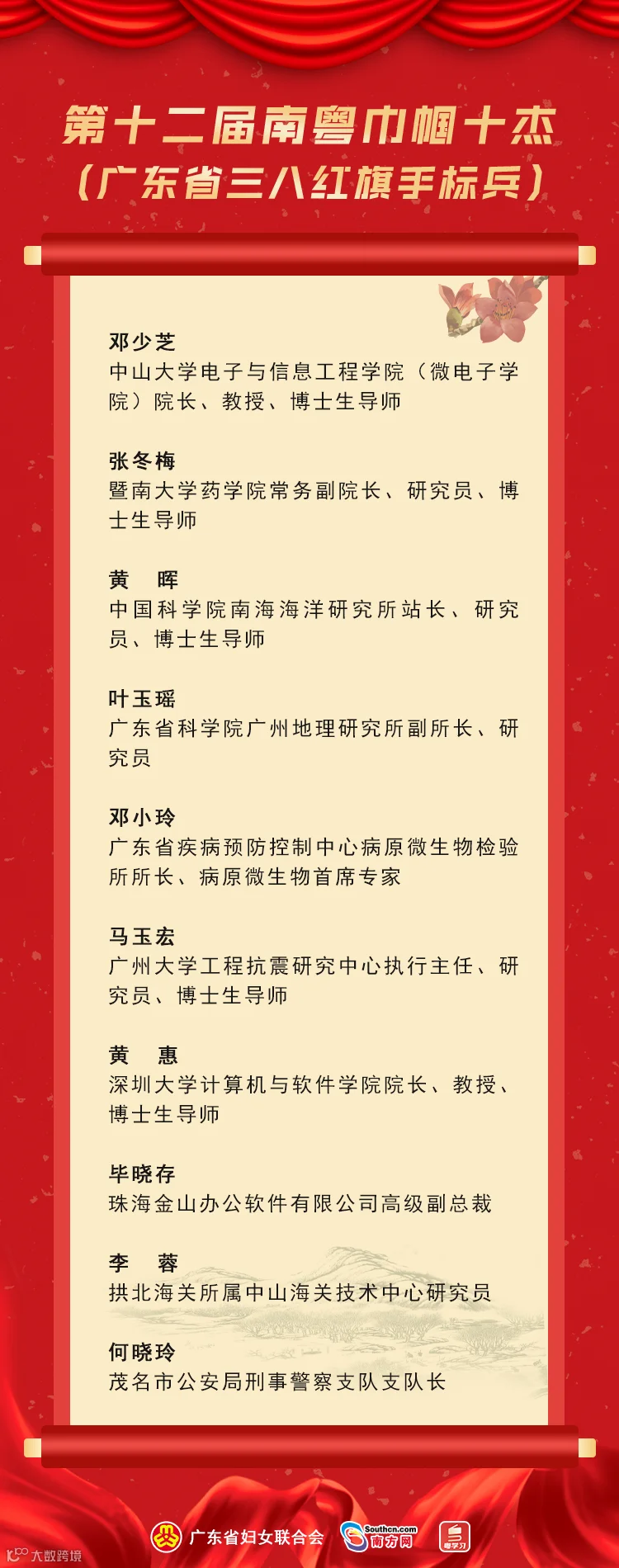 为深入贯彻习近平新时代中国特色社会主义思想,贯彻落实习近平总书记关于科技创新的重要论述,大力弘扬科学家精神,激励广大妇女为推动建设更高水平的科技创新强省发挥半边天作用。今年省妇联围绕科技创新主题,评选了第十二届南粤巾帼十杰,同时授予广东省三八红旗手标兵称号。