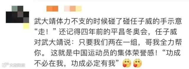 武大靖和任子威并列时有一个沟通,