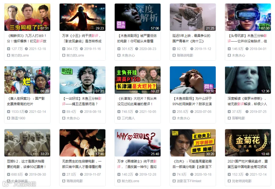 视频网站上可搜索到大量影评类的视频剪辑作品。