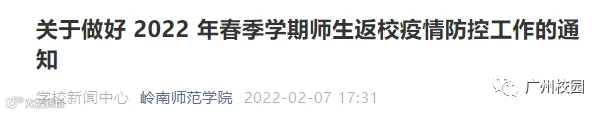 2月7日,岭南师范学院发布关于做好2022年春季学期师生返校疫情防控工作的通知。