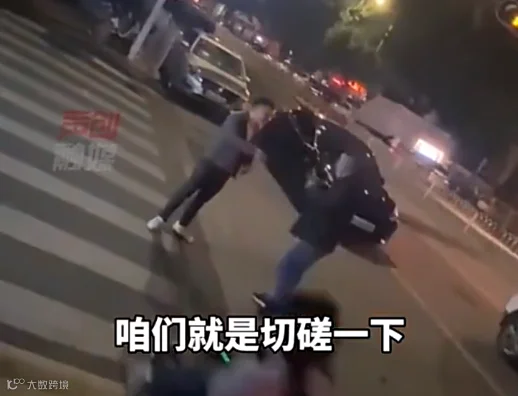 一段两男子停车在路口挥拳相向的视频