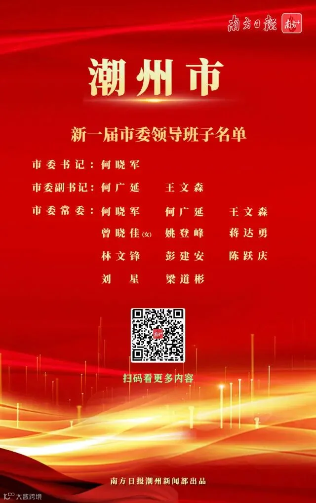 何晓军,男,汉族,1972年7月生,在职研究生,经济学博士,中共党员,当选为潮州市委书记。