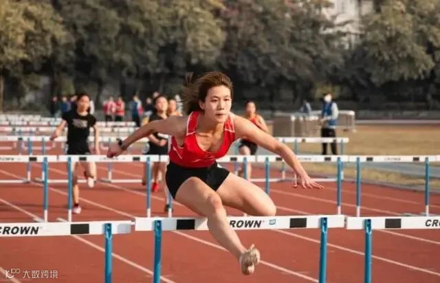 跨栏赛场,数个身影腾空飞跃,跨越层层障碍后轻盈落地,引来掌声连连;