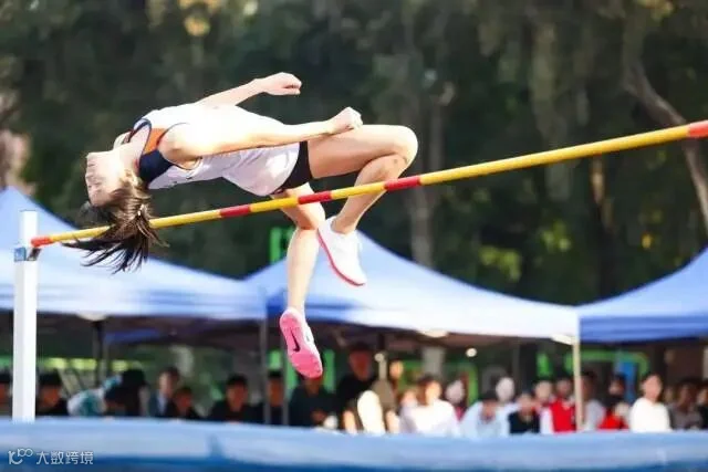 跳高选手助跑、起跳、过杆、落下,优雅完成背越式跳高……