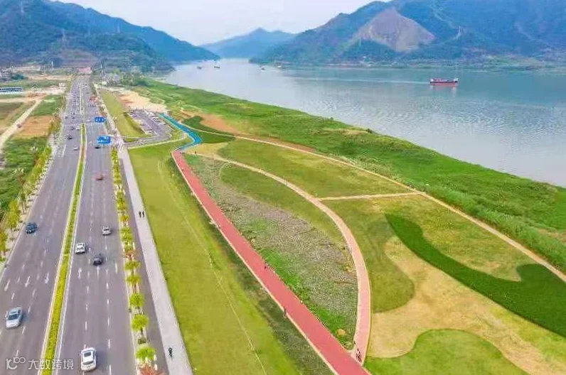 肇庆封开贺江碧道画廊风光。