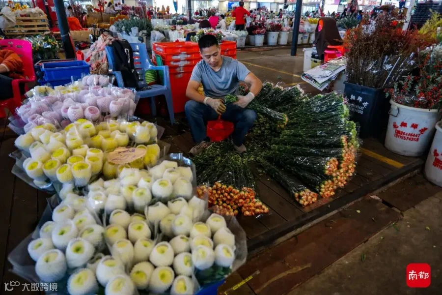 1月7日 ,广州岭南花卉市场,档口老板修葺花束。南都拍客 陈志强 摄