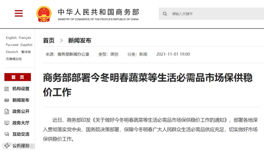 北方省份要按时完成本年度冬春蔬菜储备计划,南方省份要根据自身情况建立完善蔬菜储备;