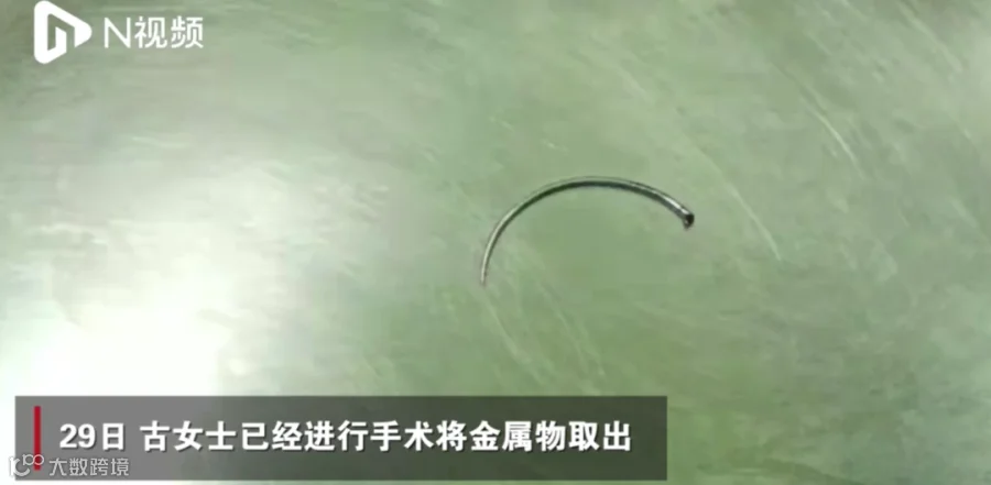 29日,古女士已经进行手术将金属物取出。