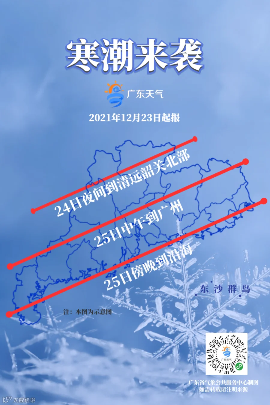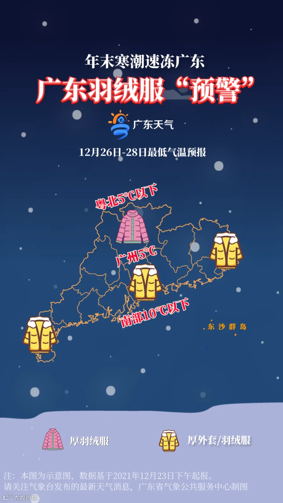 1)寒潮24日夜间入粤,25日自北向南影响广东,26日-27日阴雨寒冷。