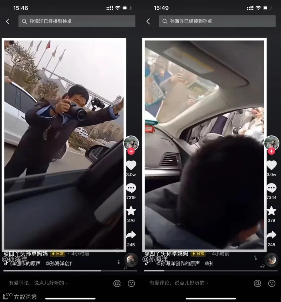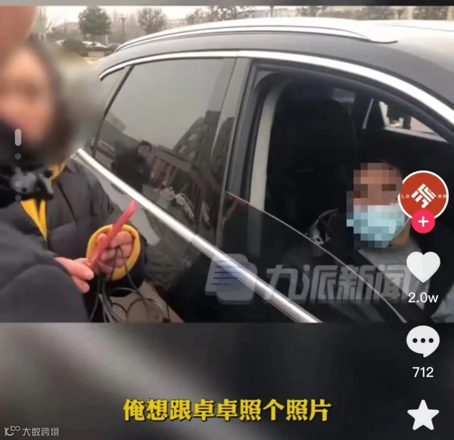随后,23日中午,彭四英在抖音账号上发布一则视频,一家人坐在车内,车周围有不少人将镜头对准孙卓拍照并喊话。