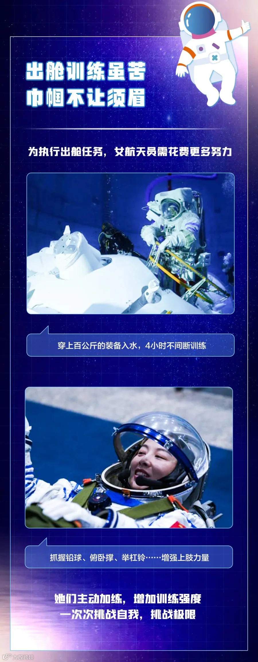 为迎接女航天员,中国空间站做了哪些准备?女航天员在太空中有哪些优势?她们的选拔标准、训练标准又有何不同?看图,一起了解↓↓↓