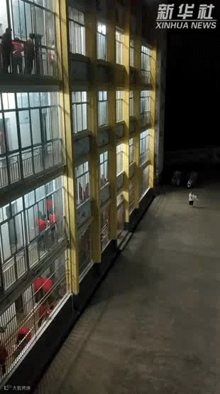 拿着小喇叭在宿舍楼前