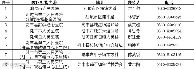 汕尾市发热门诊名单公布如下: