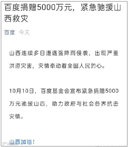 3.百度捐赠5000万元驰援山西