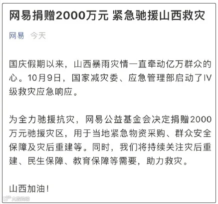 6.网易捐款2000万元驰援山西