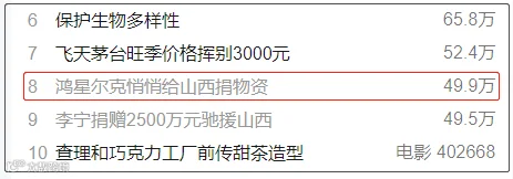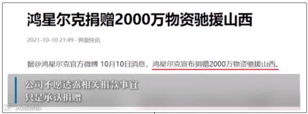 13.鸿星尔克悄悄给山西捐物资2000万