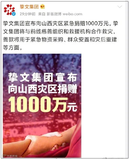8.挚文集团捐赠1000万元驰援山西