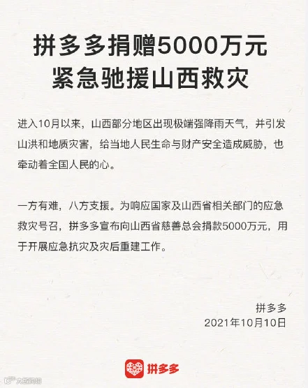 4.拼多多捐赠5000万元驰援山西