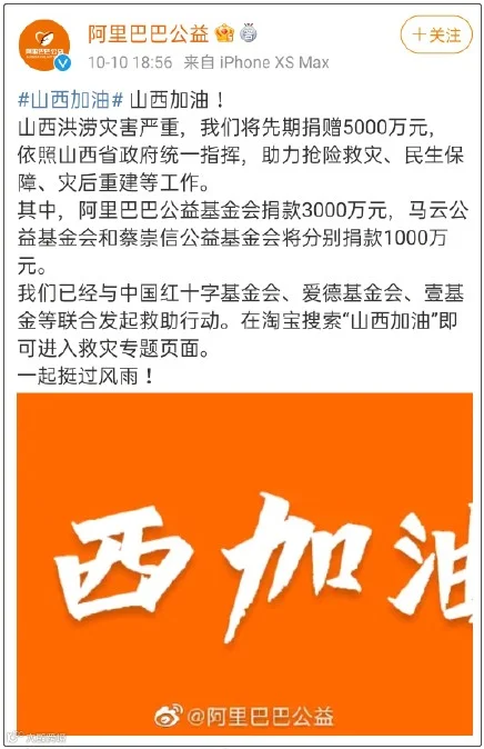 2.阿里巴巴公益捐赠5000万元驰援山西