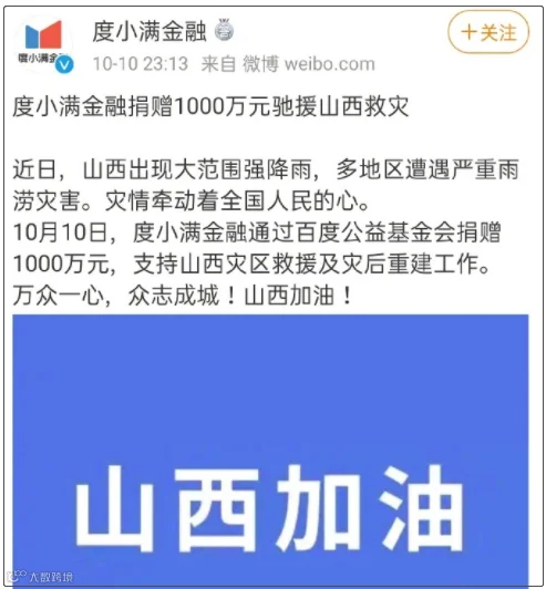 18.度小满金融捐赠1000万元驰援山西
