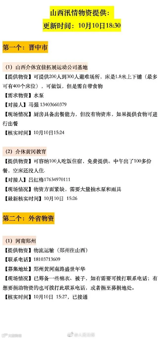 针对受灾情况,多家企业宣布对山西受影响地区进行捐赠。