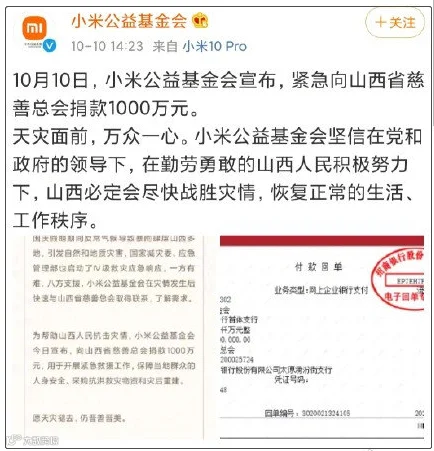9.小米捐款1000万元驰援山西