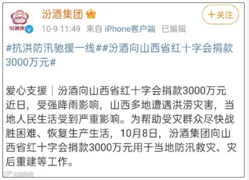 11.山西汾酒集团捐赠3000万