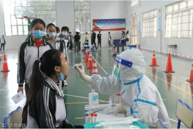 12月15日,东莞市桥头中学集中开展核酸检测。图源:“东莞慧教育”南方号