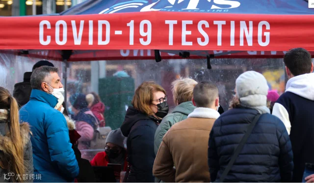 12月13日,人们在美国纽约时报广场的新冠检测点排队检测。图源:新华社