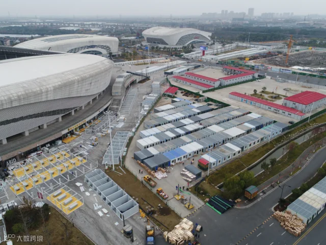 12月14日,浙江绍兴上虞建设中的可容纳2500人的体育中心临时隔离点。图源:新华社