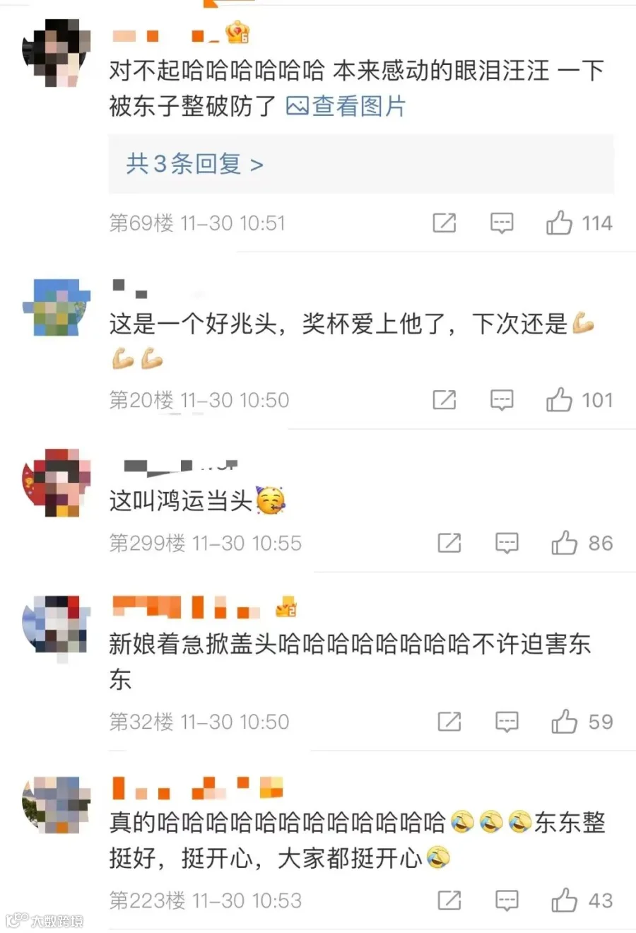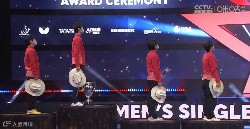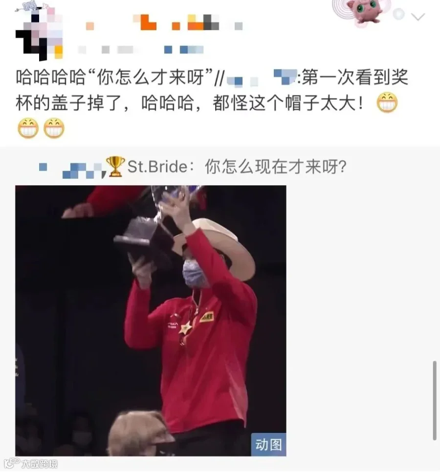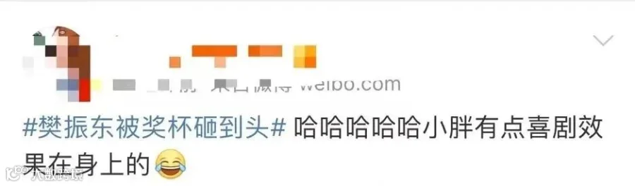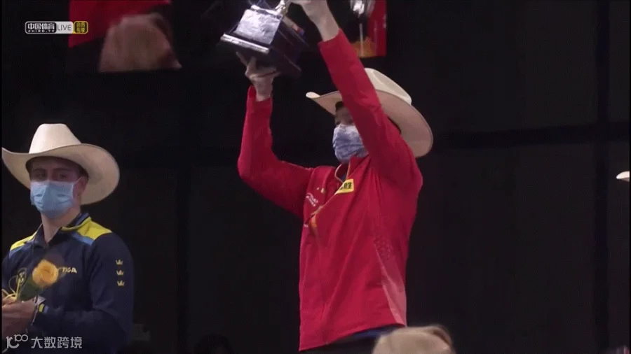 一个小插曲:樊振东被奖杯盖子砸中了头。
